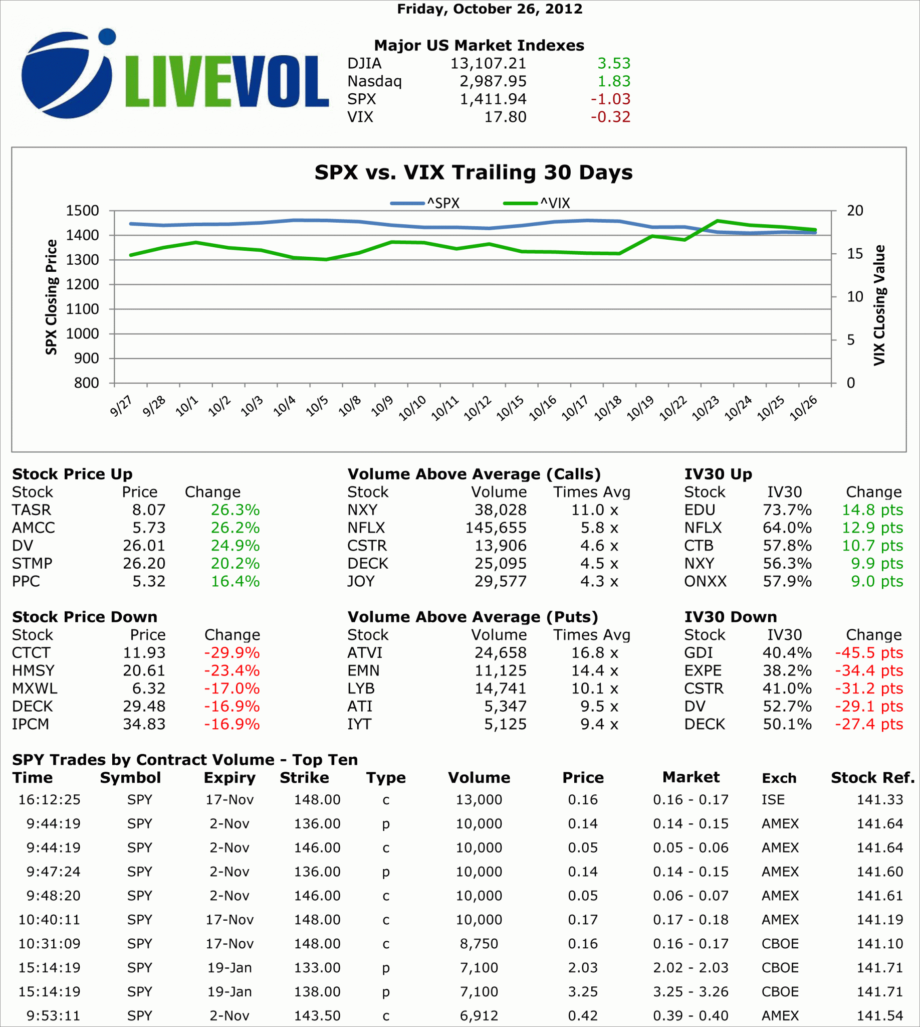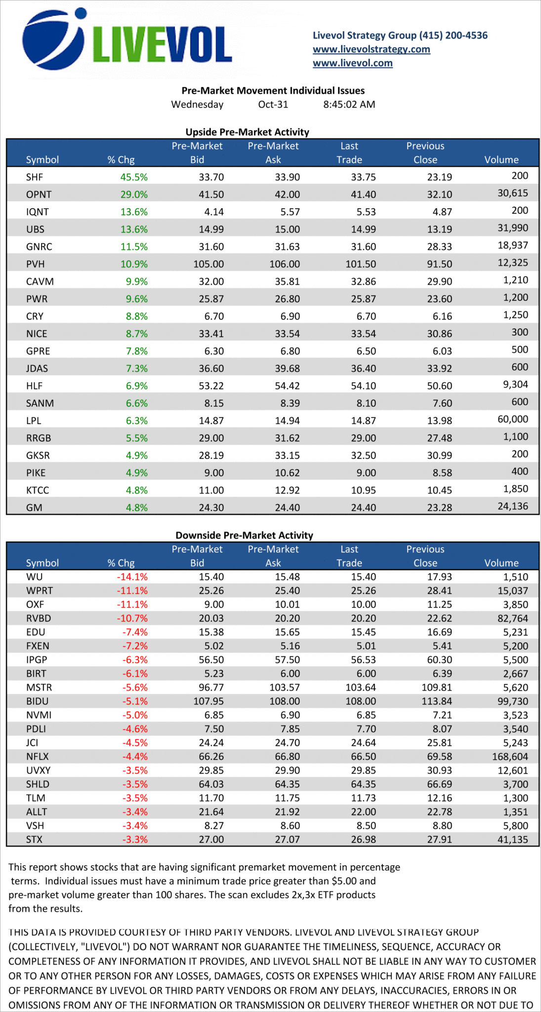 10/31/12 Pre-Market by Ophir Gottlieb | Oct 31, 2012 | Industry, Trading & Analysis A pre-market snapshot for Wednesday, October 31