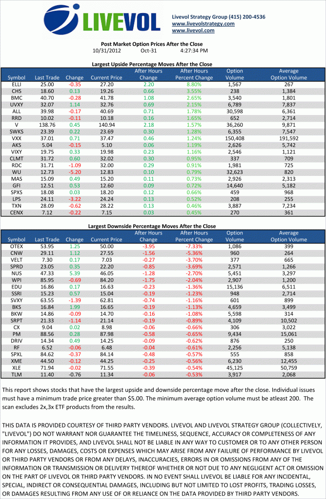 Pre-Market 11/1/12 by Ophir Gottlieb | Nov 1, 2012 | Industry, Trading & Analysis A pre-market snapshot for Thursday, November 1