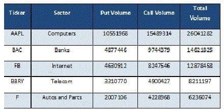 In this Minyanville post on Monday, “Apple Tops List of Stocks With High Options Volume,”?Schaeffer’s Investment Research takes a look at the Top 5 stocks with the highest options volume for the year-to-date. Interestingly, their ranking is also the same in order of?call volume, put volume, and overall volume.