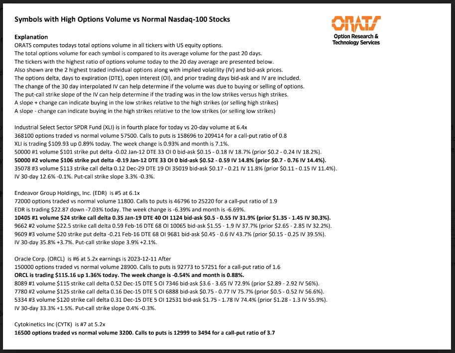 Information available on ORATS.com is available to all subscribers. ORATS does not make recommendations as to particular securities or derivative instruments, and does not advocate the purchase or sale of any security or investment by you or any other individual. ORATS does not guarantee the accuracy, completeness or timeliness of the Information. By using the Services of ORATS.com, including any applications or content available through us, you agree that use of the Services is entirely at your own risk. You understand and acknowledge that there is a very high degree of risk involved in trading options and securities. Past results are not indicative of future returns that may be realized by you. We assume no responsibility or liability for your trading and investment results.