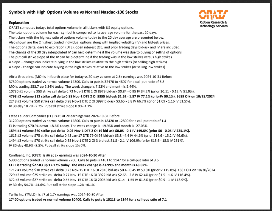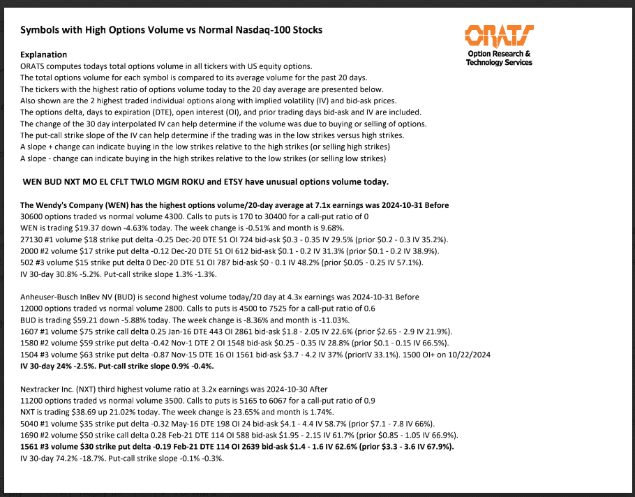 WEN, BUD, NXT, MO, EL, CFLT, TWLO, MGM, ROKU, and ETSY have unusual options volume today.