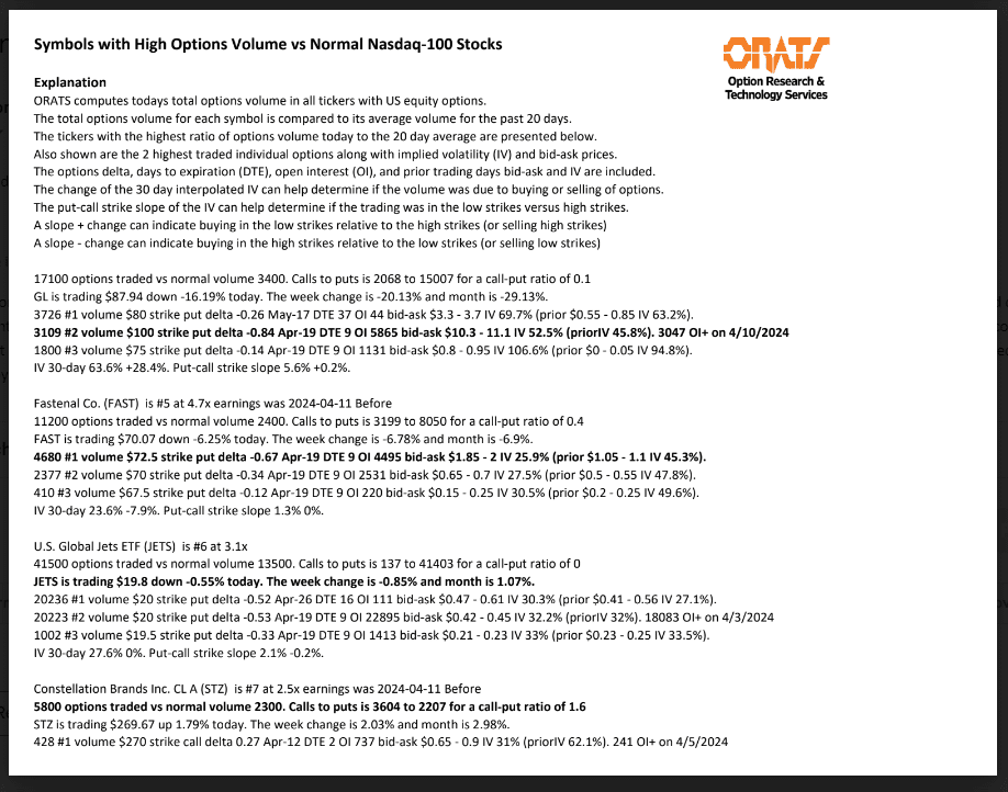 Information available on ORATS.com is available to all subscribers. ORATS does not make recommendations as to particular securities or derivative instruments, and does not advocate the purchase or sale of any security or investment by you or any other individual. ORATS does not guarantee the accuracy, completeness or timeliness of the Information. By using the Services of ORATS.com, including any applications or content available through us, you agree that use of the Services is entirely at your own risk. You understand and acknowledge that there is a very high degree of risk involved in trading options and securities. Past results are not indicative of future returns that may be realized by you. We assume no responsibility or liability for your trading and investment results.