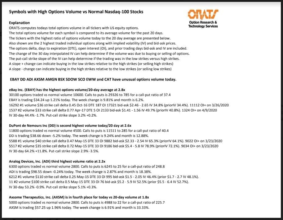 EBAY, DD, ADI, AXSM, AMGN, BSX, SDOW, SCO, EWW and CAT have unusual options volume today.