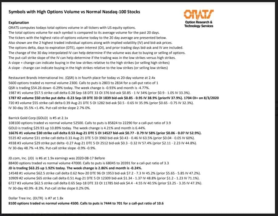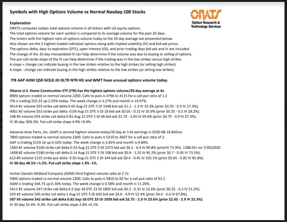 ITB, AAP, ADM, QSR, GOLD, JD, DLTR, NTR, HD and WMT have unusual options volume today.