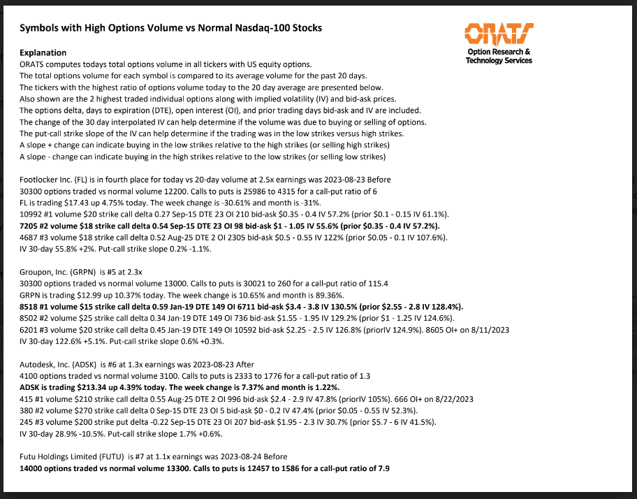 Information available on ORATS.com is available to all subscribers. ORATS does not make recommendations as to particular securities or derivative instruments, and does not advocate the purchase or sale of any security or investment by you or any other individual. ORATS does not guarantee the accuracy, completeness or timeliness of the Information. By using the Services of ORATS.com, including any applications or content available through us, you agree that use of the Services is entirely at your own risk. You understand and acknowledge that there is a very high degree of risk involved in trading options and securities. Past results are not indicative of future returns that may be realized by you. We assume no responsibility or liability for your trading and investment results.