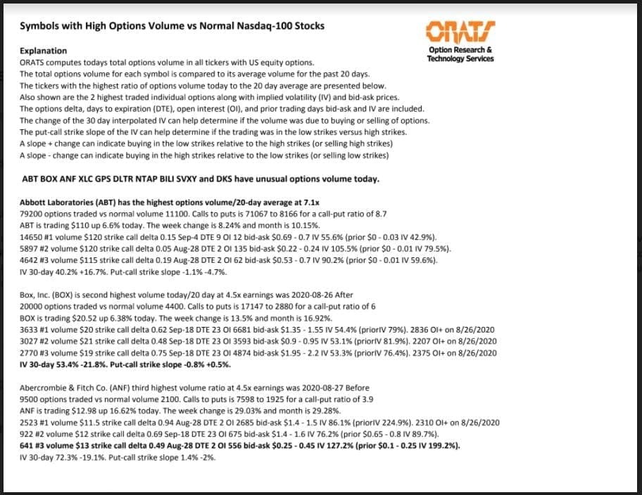 ABT, BOX, ANF, XLC, GPS, DLTR, NTAP, BILI and SVXY have unusual options volume today.