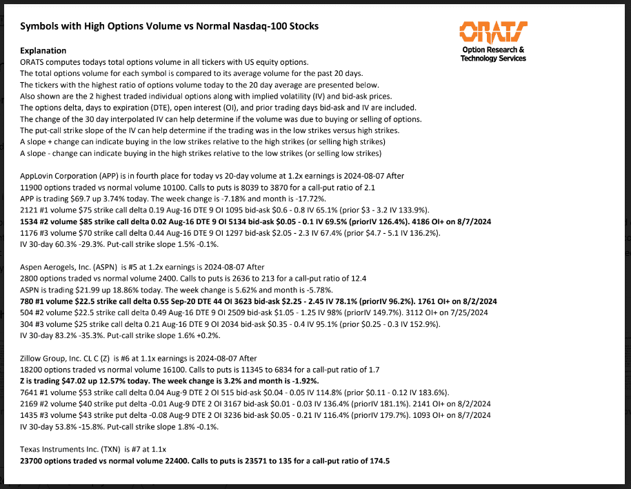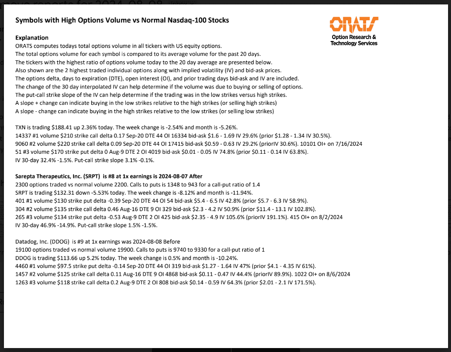 Information available on ORATS.com is available to all subscribers. ORATS does not make recommendations as to particular securities or derivative instruments, and does not advocate the purchase or sale of any security or investment by you or any other individual. ORATS does not guarantee the accuracy, completeness or timeliness of the Information. By using the Services of ORATS.com, including any applications or content available through us, you agree that use of the Services is entirely at your own risk. You understand and acknowledge that there is a very high degree of risk involved in trading options and securities. Past results are not indicative of future returns that may be realized by you. We assume no responsibility or liability for your trading and investment results.