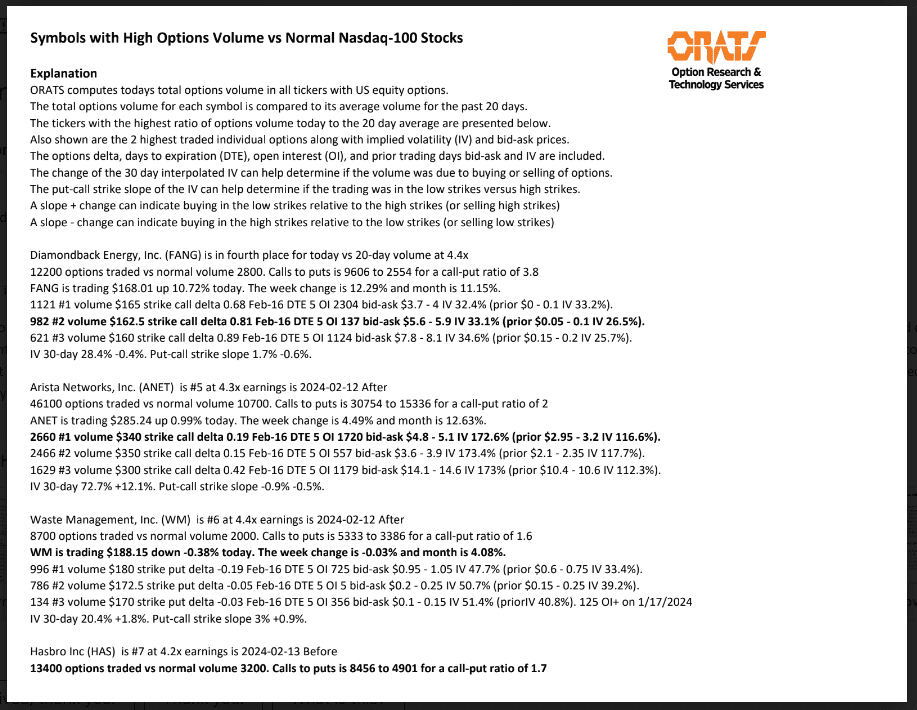 TEVA, MAT, LSCC, FANG, ANET, WM, HAS, ARM, CDNS, and RKT have unusual options volume today.