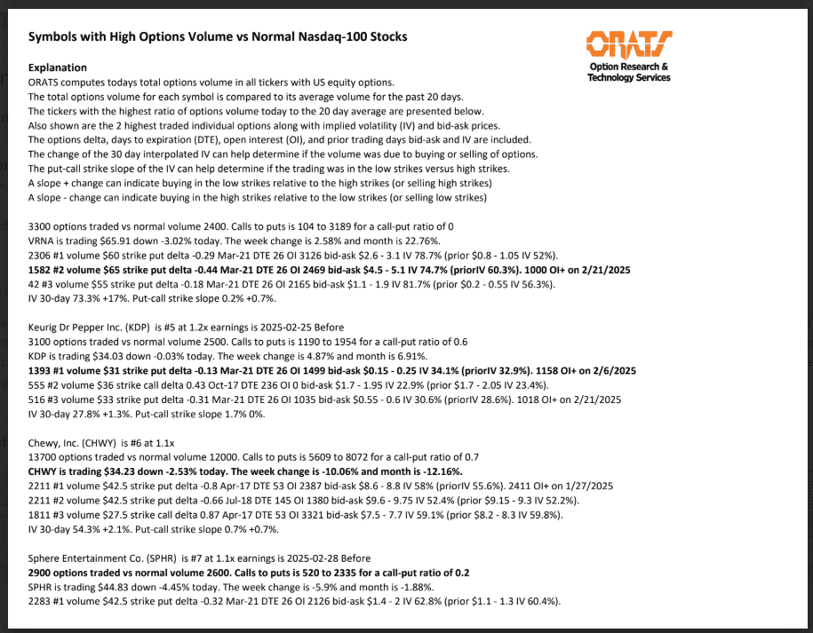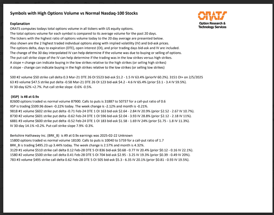 Information available on ORATS.com is available to all subscribers. ORATS does not make recommendations as to particular securities or derivative instruments, and does not advocate the purchase or sale of any security or investment by you or any other individual. ORATS does not guarantee the accuracy, completeness or timeliness of the Information. By using the Services of ORATS.com, including any applications or content available through us, you agree that use of the Services is entirely at your own risk. You understand and acknowledge that there is a very high degree of risk involved in trading options and securities. Past results are not indicative of future returns that may be realized by you. We assume no responsibility or liability for your trading and investment results.