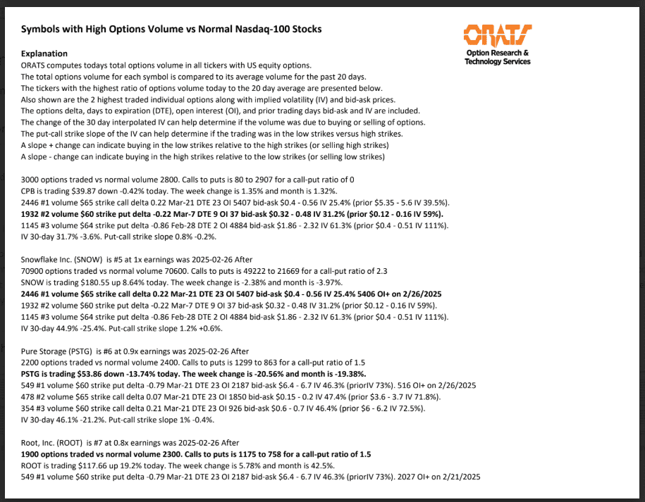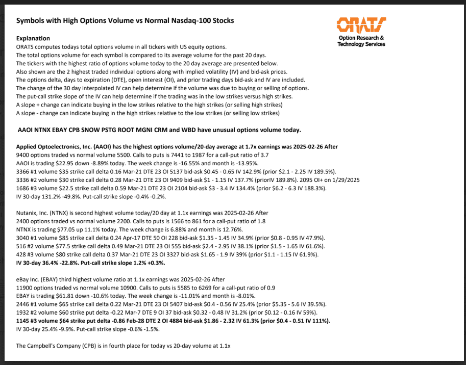 AAOI, NTNX, EBAY, CPB, SNOW, PSTG, ROOT, MGNI, CRM, and WBD have unusual options volume today.