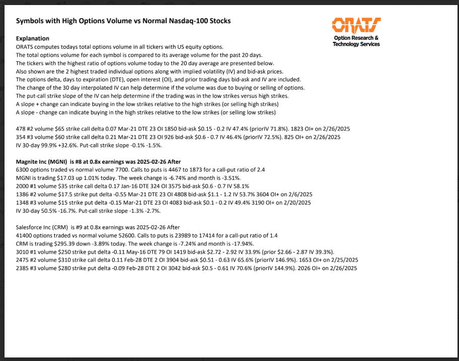 Information available on ORATS.com is available to all subscribers. ORATS does not make recommendations as to particular securities or derivative instruments, and does not advocate the purchase or sale of any security or investment by you or any other individual. ORATS does not guarantee the accuracy, completeness or timeliness of the Information. By using the Services of ORATS.com, including any applications or content available through us, you agree that use of the Services is entirely at your own risk. You understand and acknowledge that there is a very high degree of risk involved in trading options and securities. Past results are not indicative of future returns that may be realized by you. We assume no responsibility or liability for your trading and investment results.