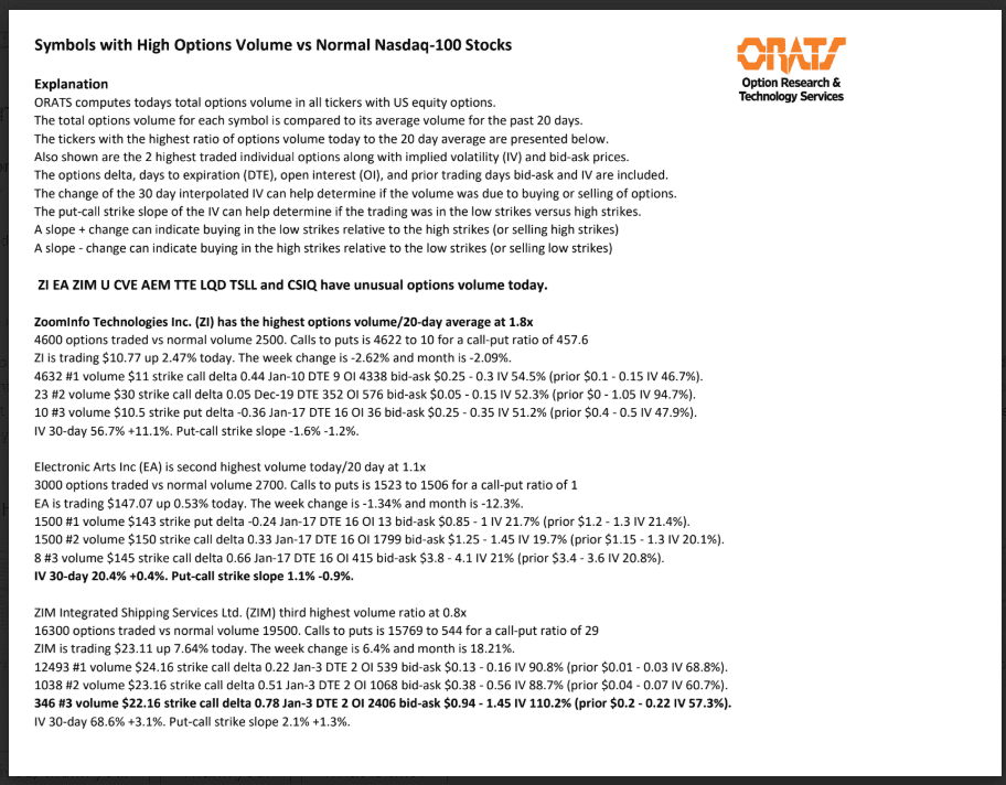 ZI, EA, ZIM, U, CVE, AEM, TTE, LQD, TSLL, and CSIQ have unusual options volume today.
