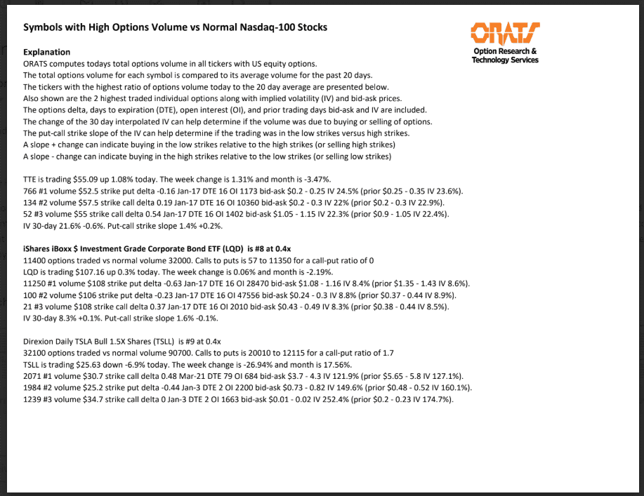 Information available on ORATS.com is available to all subscribers. ORATS does not make recommendations as to particular securities or derivative instruments, and does not advocate the purchase or sale of any security or investment by you or any other individual. ORATS does not guarantee the accuracy, completeness or timeliness of the Information. By using the Services of ORATS.com, including any applications or content available through us, you agree that use of the Services is entirely at your own risk. You understand and acknowledge that there is a very high degree of risk involved in trading options and securities. Past results are not indicative of future returns that may be realized by you. We assume no responsibility or liability for your trading and investment results.