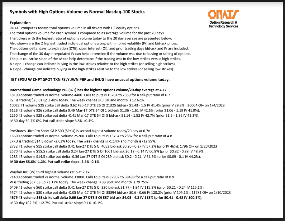 IGT, SPXU, W, CHPT, SPOT, TXN, FSLY, JWN, PBF, and JNUG have unusual options volume today.