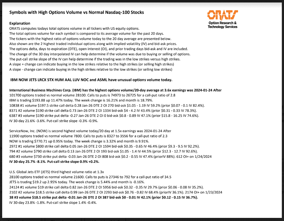 IBM, NOW, JETS, LRCX, STX, HUM, AAL, LUV, NOC, and ASML have unusual options volume today.