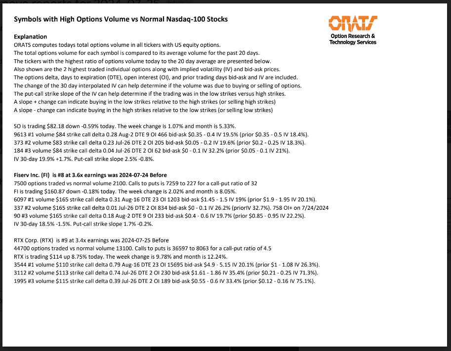 Information available on ORATS.com is available to all subscribers. ORATS does not make recommendations as to particular securities or derivative instruments, and does not advocate the purchase or sale of any security or investment by you or any other individual. ORATS does not guarantee the accuracy, completeness or timeliness of the Information. By using the Services of ORATS.com, including any applications or content available through us, you agree that use of the Services is entirely at your own risk. You understand and acknowledge that there is a very high degree of risk involved in trading options and securities. Past results are not indicative of future returns that may be realized by you. We assume no responsibility or liability for your trading and investment results.