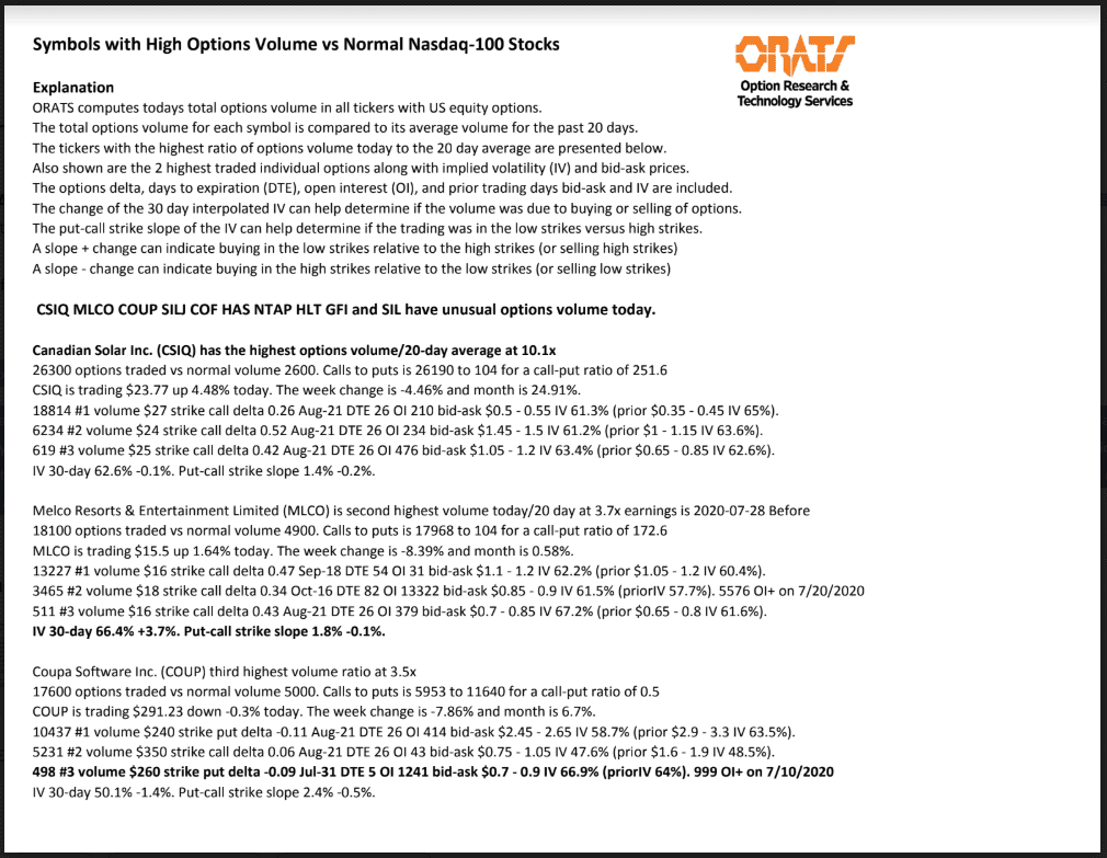 CSIQ, MLCO, COUP, SILJ, COF, HAS, NTAP, HLT, GFI and SIL have unusual options volume today.