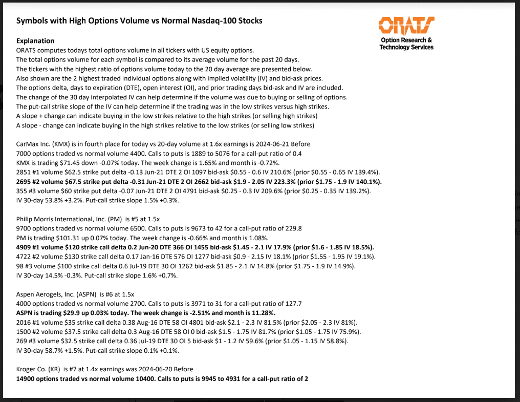 Information available on ORATS.com is available to all subscribers. ORATS does not make recommendations as to particular securities or derivative instruments, and does not advocate the purchase or sale of any security or investment by you or any other individual. ORATS does not guarantee the accuracy, completeness or timeliness of the Information. By using the Services of ORATS.com, including any applications or content available through us, you agree that use of the Services is entirely at your own risk. You understand and acknowledge that there is a very high degree of risk involved in trading options and securities. Past results are not indicative of future returns that may be realized by you. We assume no responsibility or liability for your trading and investment results.