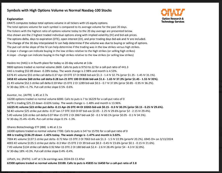 Information available on ORATS.com is available to all subscribers. ORATS does not make recommendations as to particular securities or derivative instruments, and does not advocate the purchase or sale of any security or investment by you or any other individual. ORATS does not guarantee the accuracy, completeness or timeliness of the Information. By using the Services of ORATS.com, including any applications or content available through us, you agree that use of the Services is entirely at your own risk. You understand and acknowledge that there is a very high degree of risk involved in trading options and securities. Past results are not indicative of future returns that may be realized by you. We assume no responsibility or liability for your trading and investment results.