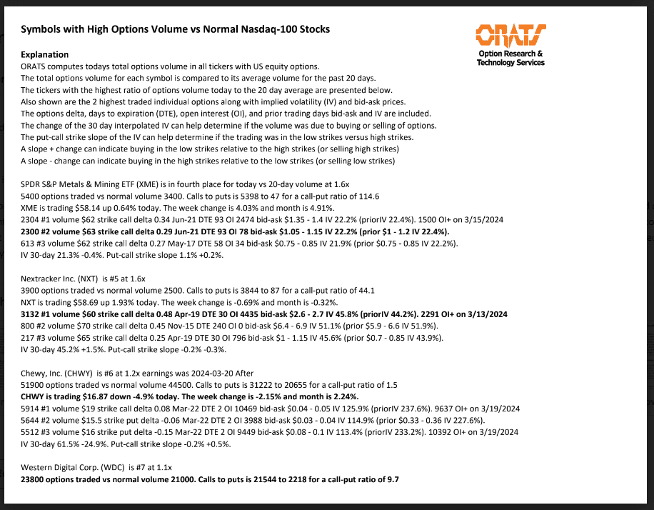 Information available on ORATS.com is available to all subscribers. ORATS does not make recommendations as to particular securities or derivative instruments, and does not advocate the purchase or sale of any security or investment by you or any other individual. ORATS does not guarantee the accuracy, completeness or timeliness of the Information. By using the Services of ORATS.com, including any applications or content available through us, you agree that use of the Services is entirely at your own risk. You understand and acknowledge that there is a very high degree of risk involved in trading options and securities. Past results are not indicative of future returns that may be realized by you. We assume no responsibility or liability for your trading and investment results.