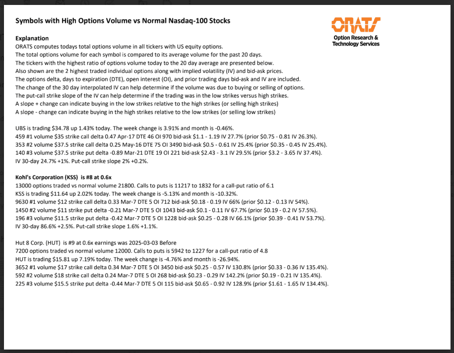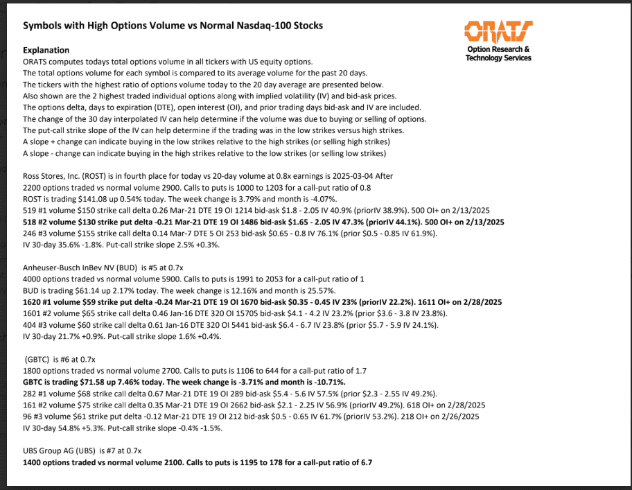 Information available on ORATS.com is available to all subscribers. ORATS does not make recommendations as to particular securities or derivative instruments, and does not advocate the purchase or sale of any security or investment by you or any other individual. ORATS does not guarantee the accuracy, completeness or timeliness of the Information. By using the Services of ORATS.com, including any applications or content available through us, you agree that use of the Services is entirely at your own risk. You understand and acknowledge that there is a very high degree of risk involved in trading options and securities. Past results are not indicative of future returns that may be realized by you. We assume no responsibility or liability for your trading and investment results.