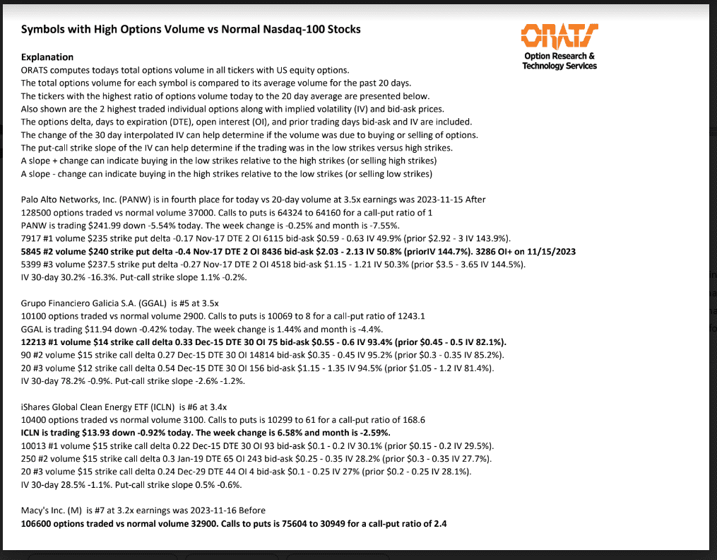 Information available on ORATS.com is available to all subscribers. ORATS does not make recommendations as to particular securities or derivative instruments, and does not advocate the purchase or sale of any security or investment by you or any other individual. ORATS does not guarantee the accuracy, completeness or timeliness of the Information. By using the Services of ORATS.com, including any applications or content available through us, you agree that use of the Services is entirely at your own risk. You understand and acknowledge that there is a very high degree of risk involved in trading options and securities. Past results are not indicative of future returns that may be realized by you. We assume no responsibility or liability for your trading and investment results.