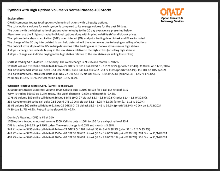 Information available on ORATS.com is available to all subscribers. ORATS does not make recommendations as to particular securities or derivative instruments, and does not advocate the purchase or sale of any security or investment by you or any other individual. ORATS does not guarantee the accuracy, completeness or timeliness of the Information. By using the Services of ORATS.com, including any applications or content available through us, you agree that use of the Services is entirely at your own risk. You understand and acknowledge that there is a very high degree of risk involved in trading options and securities. Past results are not indicative of future returns that may be realized by you. We assume no responsibility or liability for your trading and investment results.
