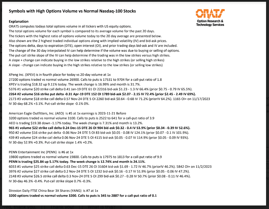 Information available on ORATS.com is available to all subscribers. ORATS does not make recommendations as to particular securities or derivative instruments, and does not advocate the purchase or sale of any security or investment by you or any other individual. ORATS does not guarantee the accuracy, completeness or timeliness of the Information. By using the Services of ORATS.com, including any applications or content available through us, you agree that use of the Services is entirely at your own risk. You understand and acknowledge that there is a very high degree of risk involved in trading options and securities. Past results are not indicative of future returns that may be realized by you. We assume no responsibility or liability for your trading and investment results.