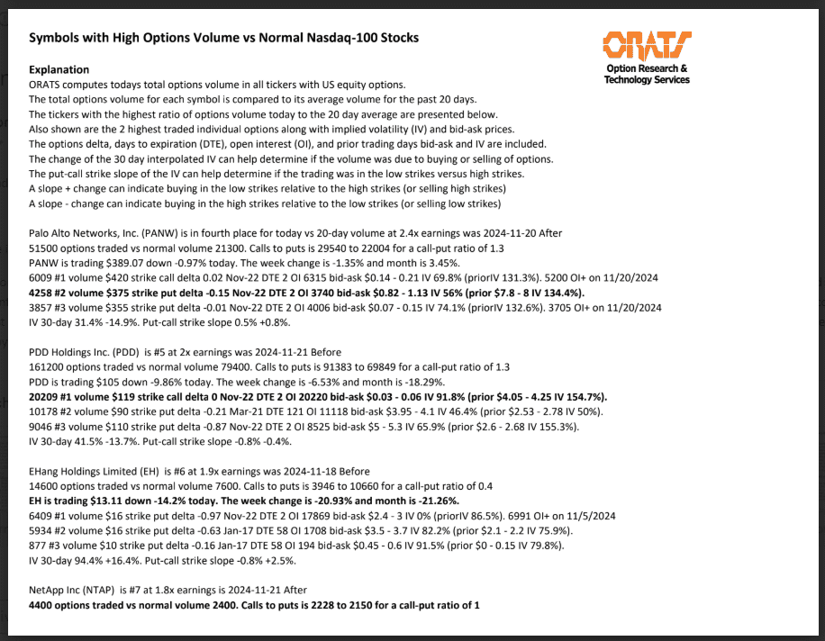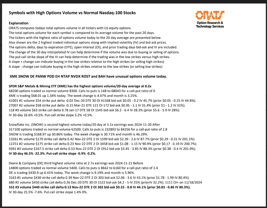 XME, SNOW, DE, PANW, PDD, EH, NTAP, NVDX, ROST, and BAH have unusual options volume today.