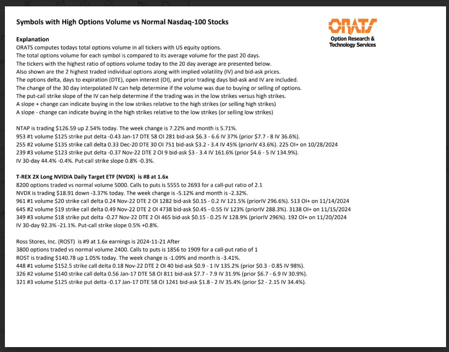 Information available on ORATS.com is available to all subscribers. ORATS does not make recommendations as to particular securities or derivative instruments, and does not advocate the purchase or sale of any security or investment by you or any other individual. ORATS does not guarantee the accuracy, completeness or timeliness of the Information. By using the Services of ORATS.com, including any applications or content available through us, you agree that use of the Services is entirely at your own risk. You understand and acknowledge that there is a very high degree of risk involved in trading options and securities. Past results are not indicative of future returns that may be realized by you. We assume no responsibility or liability for your trading and investment results.