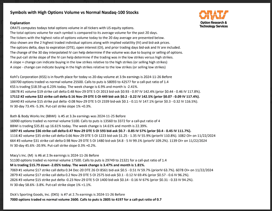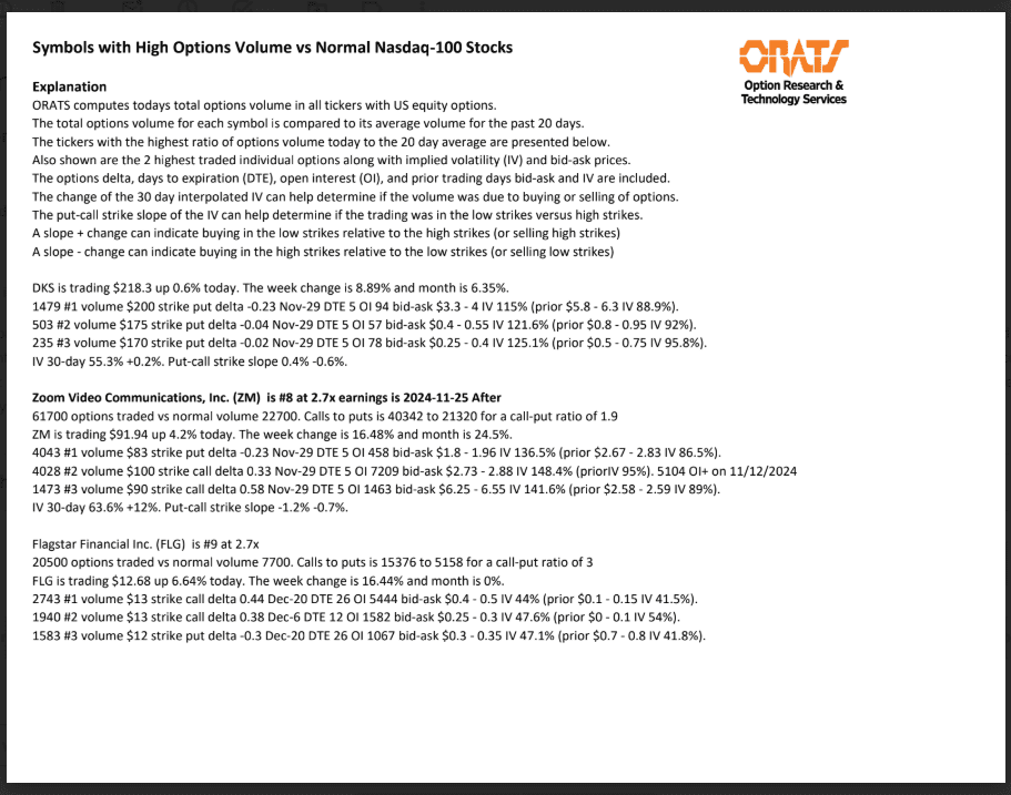 Information available on ORATS.com is available to all subscribers. ORATS does not make recommendations as to particular securities or derivative instruments, and does not advocate the purchase or sale of any security or investment by you or any other individual. ORATS does not guarantee the accuracy, completeness or timeliness of the Information. By using the Services of ORATS.com, including any applications or content available through us, you agree that use of the Services is entirely at your own risk. You understand and acknowledge that there is a very high degree of risk involved in trading options and securities. Past results are not indicative of future returns that may be realized by you. We assume no responsibility or liability for your trading and investment results.