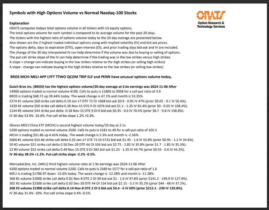 BROS, MCHI, MELI, APP, LYFT, TTWO, QCOM, TRIP, ELF, and PENN have unusual options volume today.