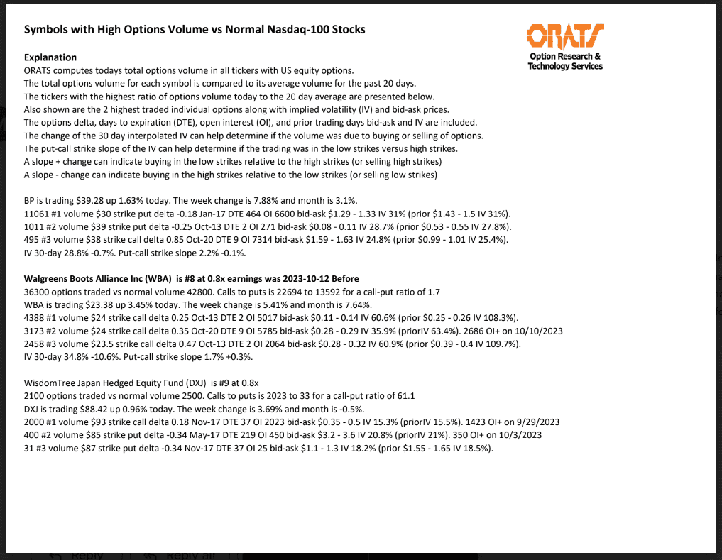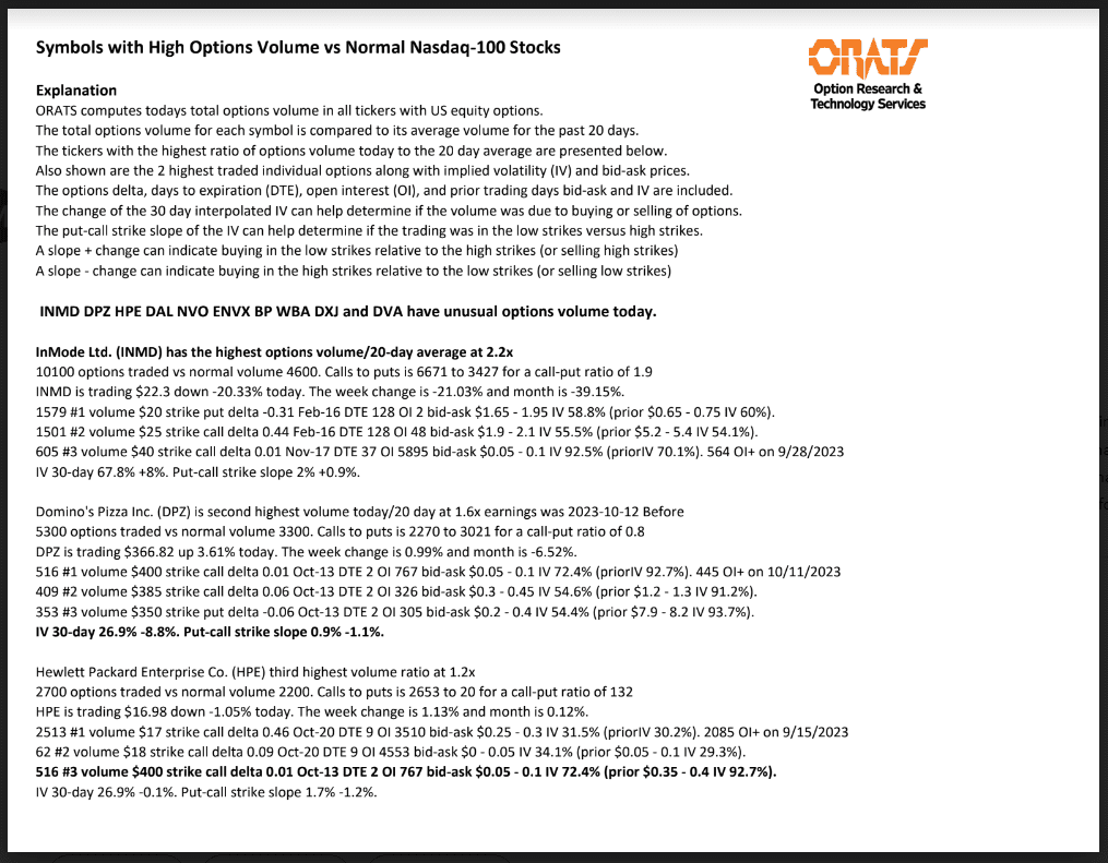 Information available on ORATS.com is available to all subscribers. ORATS does not make recommendations as to particular securities or derivative instruments, and does not advocate the purchase or sale of any security or investment by you or any other individual. ORATS does not guarantee the accuracy, completeness or timeliness of the Information. By using the Services of ORATS.com, including any applications or content available through us, you agree that use of the Services is entirely at your own risk. You understand and acknowledge that there is a very high degree of risk involved in trading options and securities. Past results are not indicative of future returns that may be realized by you. We assume no responsibility or liability for your trading and investment results.