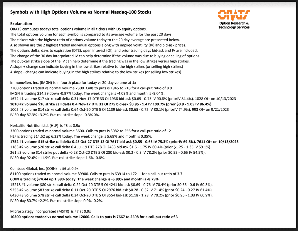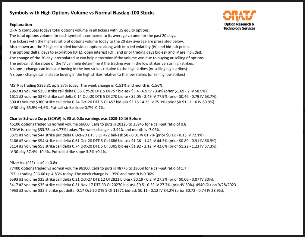 Information available on ORATS.com is available to all subscribers. ORATS does not make recommendations as to particular securities or derivative instruments, and does not advocate the purchase or sale of any security or investment by you or any other individual. ORATS does not guarantee the accuracy, completeness or timeliness of the Information. By using the Services of ORATS.com, including any applications or content available through us, you agree that use of the Services is entirely at your own risk. You understand and acknowledge that there is a very high degree of risk involved in trading options and securities. Past results are not indicative of future returns that may be realized by you. We assume no responsibility or liability for your trading and investment results.