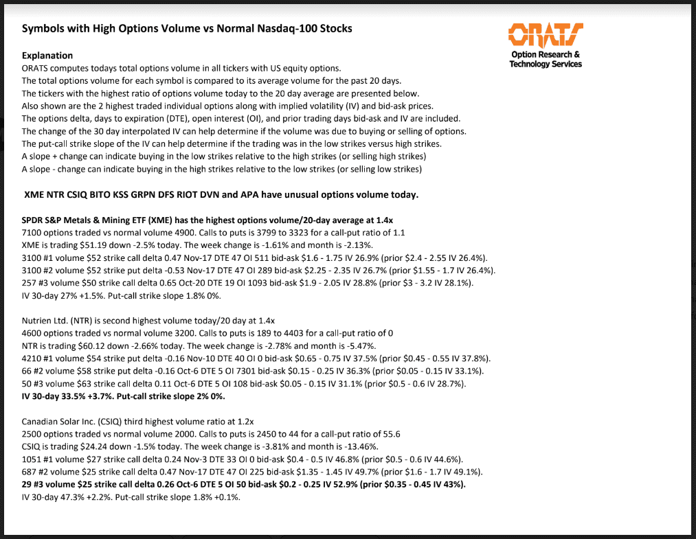 XME, NTR, CSIQ, BITO, KSS, GRPN, DFS, RIOT, DVN, and APA have unusual options volume today.