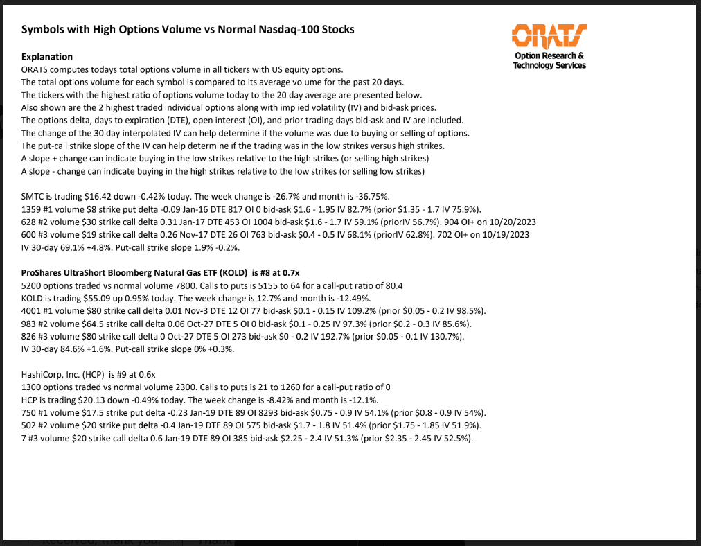 Information available on ORATS.com is available to all subscribers. ORATS does not make recommendations as to particular securities or derivative instruments, and does not advocate the purchase or sale of any security or investment by you or any other individual. ORATS does not guarantee the accuracy, completeness or timeliness of the Information. By using the Services of ORATS.com, including any applications or content available through us, you agree that use of the Services is entirely at your own risk. You understand and acknowledge that there is a very high degree of risk involved in trading options and securities. Past results are not indicative of future returns that may be realized by you. We assume no responsibility or liability for your trading and investment results.