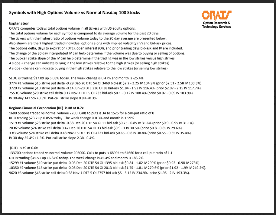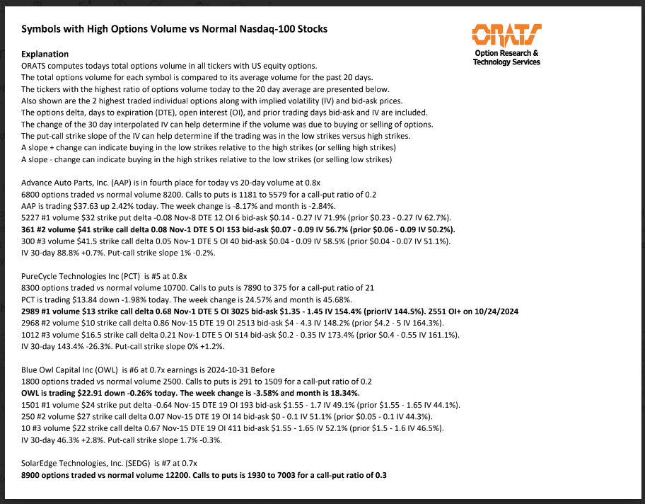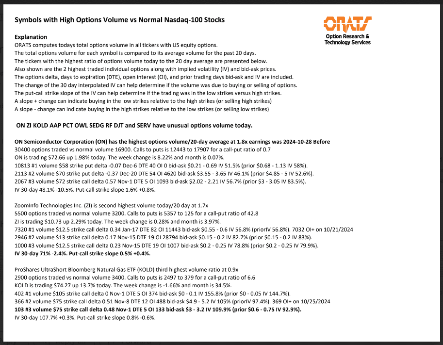 ON, ZI, KOLD, AAP, PCT, OWL, SEDG, RF, DJT, and SERV have unusual options volume today.
