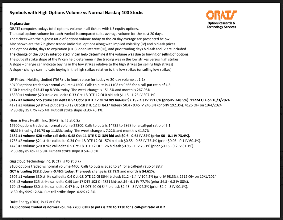 Information available on ORATS.com is available to all subscribers. ORATS does not make recommendations as to particular securities or derivative instruments, and does not advocate the purchase or sale of any security or investment by you or any other individual. ORATS does not guarantee the accuracy, completeness or timeliness of the Information. By using the Services of ORATS.com, including any applications or content available through us, you agree that use of the Services is entirely at your own risk. You understand and acknowledge that there is a very high degree of risk involved in trading options and securities. Past results are not indicative of future returns that may be realized by you. We assume no responsibility or liability for your trading and investment results.