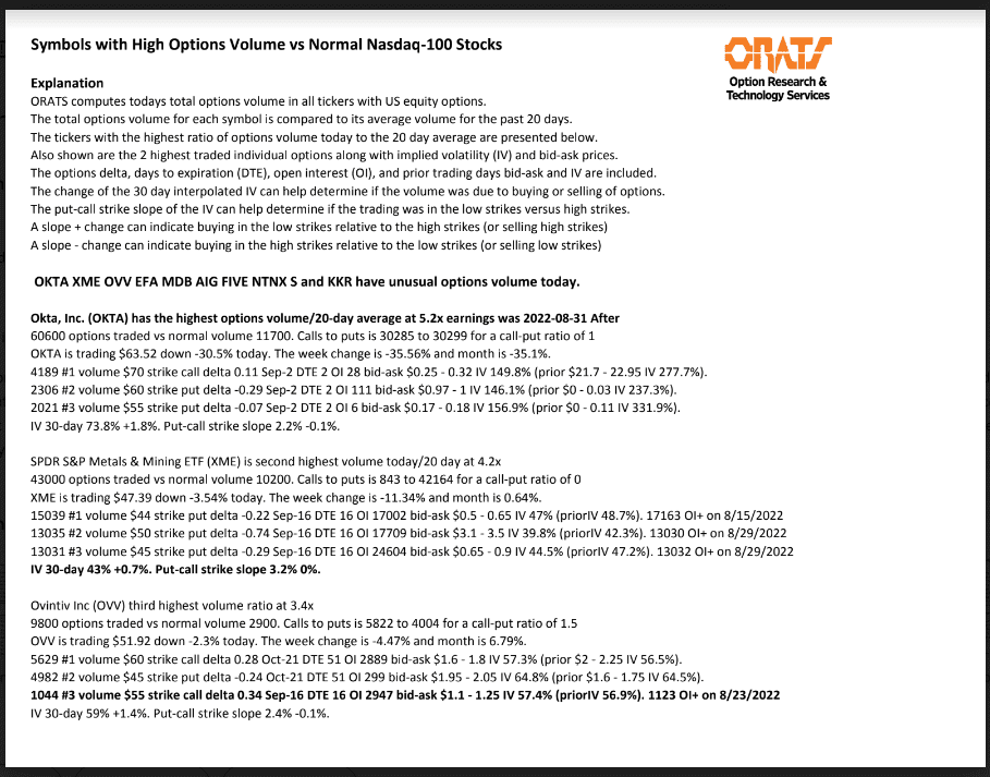 OKTA, XME, OVV, EFA, MDB, AIG, FIVE, NTNX, S, and KKR have unusual options volume today.