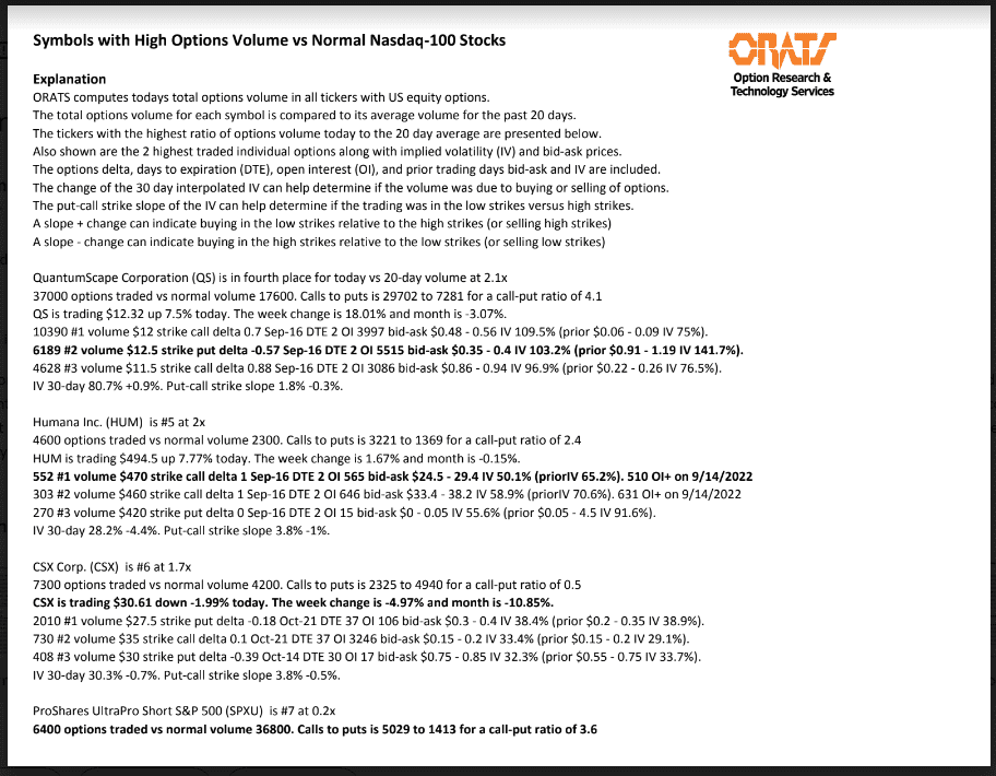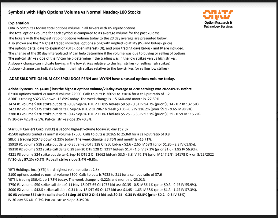 ADBE, SBLK, YETI, QS, HUM, CSX, SPXU, DOCS, PENN, and WYNN have unusual options volume today.