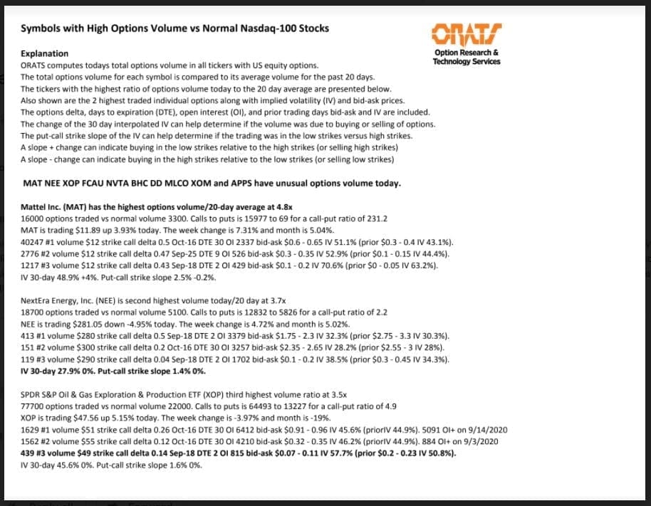 MAT, NEE, XOP, FCAU, NVTA, BHC, DD, MLCO, XOM and APPS have unusual options volume today.