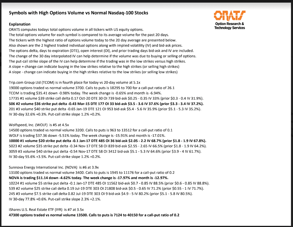 DD, SPXL, FDX, TCOM, WOLF, NOVA, IYR, NVO, KBH, and ITB have unusual options volume today.