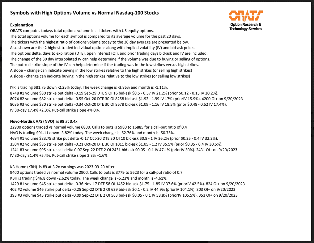 Information available on ORATS.com is available to all subscribers. ORATS does not make recommendations as to particular securities or derivative instruments, and does not advocate the purchase or sale of any security or investment by you or any other individual. ORATS does not guarantee the accuracy, completeness or timeliness of the Information. By using the Services of ORATS.com, including any applications or content available through us, you agree that use of the Services is entirely at your own risk. You understand and acknowledge that there is a very high degree of risk involved in trading options and securities. Past results are not indicative of future returns that may be realized by you. We assume no responsibility or liability for your trading and investment results.