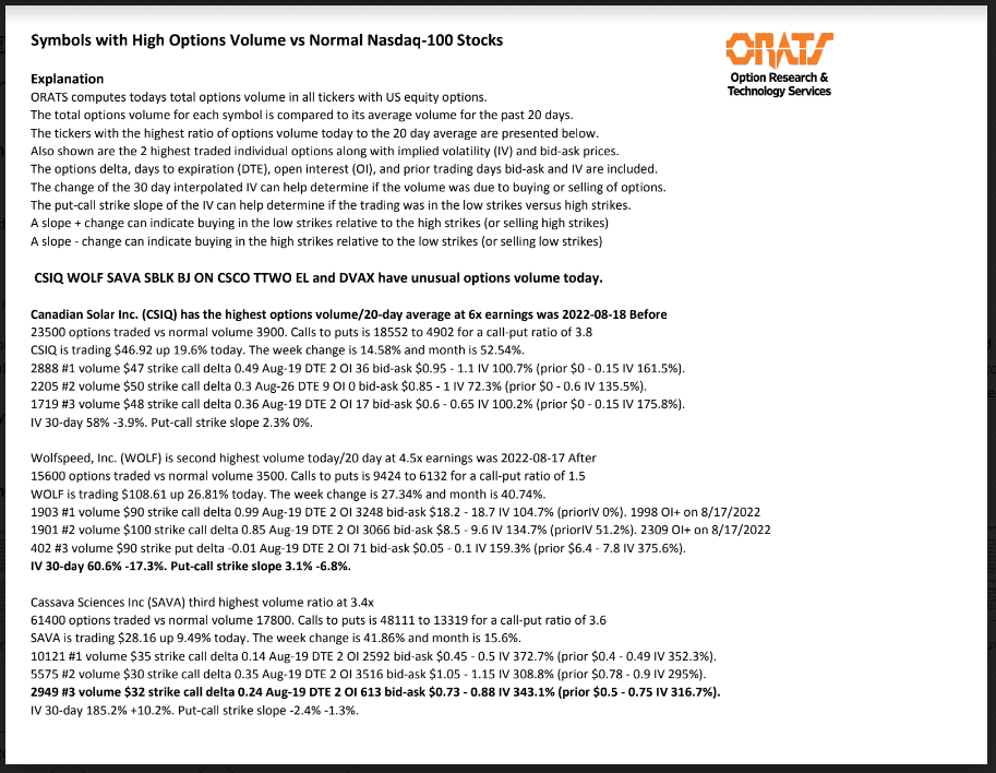 CSIQ, WOLF, SAVA, SBLK, BJ, ON, CSCO, TTWO, EL, and DVAX have unusual options volume today.