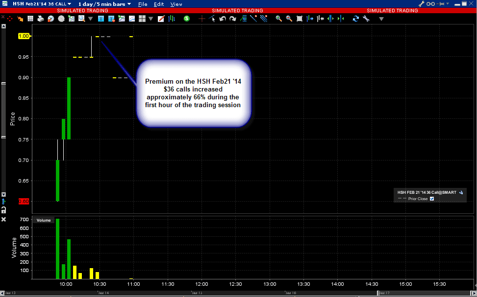 Paper-selling has been found in call options expiring in February at the 22.0 strike. Earlier the cash index rose to 18.85 before easing back to 18.15. The Vix index has only spiked above a reading of 20.0 on a handful of occasions in the past year and as the Federal Reserve mulls further trimming to its asset purchase program, investors are straining to see a prolonged spike in the volatility index across time. According to time and sales data from the CBOE exchange a single seller sold 104,000 call options set to expire next month for a premium of 75-cents. Volume at the same strike has since reached 256,000 contracts and is currently left offered at 65-cents per contract. Prior to Monday?s session the total number of open calls at the 22.0 strike was 181,000 lots. In the March contract call options at the same 22.0 strike last trade at a $1.00 premium.?? ?