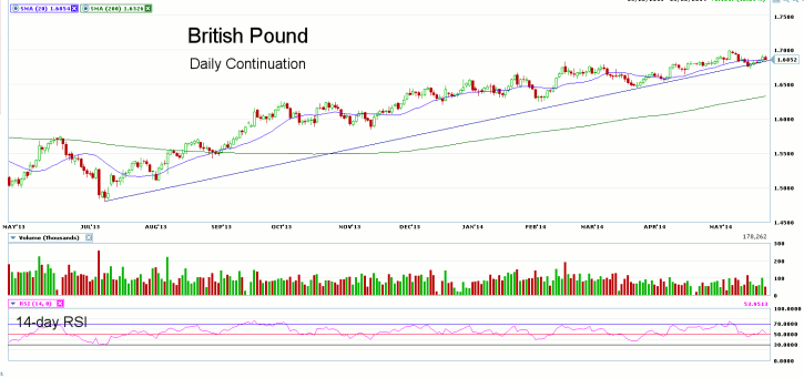 Although the British Pound has strengthened vs. the U.S. Dollar the past 12 months, the rally in the Pound Sterling still has its roadblocks. On Thursday, first quarter GDP readings came in at +0.8%, which was unchanged from the initial forecast. This disappointed traders who were expecting a gain of 0.9. In addition, net-borrowing in April rose to 11.5 billion pounds, up from 9.5 billion pounds in April 2013. So while the uptrend is still intact, Pound bulls may become nervous and a correction is possible, unless the market continues to receive ?positive? economic news on the U.K. economy.