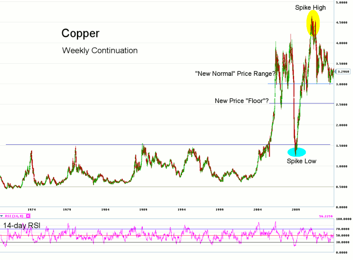 The price move back into the historic price range was very short?lived, as prices made new all-time highs just 2 years after the price collapse. This seems to confirm the belief that Copper prices may now be trading in a new more elevated price band, with a floor now seen between $2.50 and $2.75 per pound, as opposed to the previous historic price support level around $0.50 per pound.?