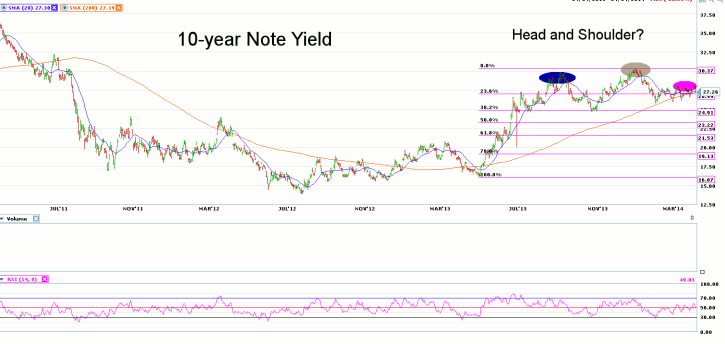 U.S. employment rose in March, but failed to meet the lofty expectations of traders and analysts. The Labor Department reported that 192,000 jobs were added last month, which was just shy of the 200,000 plus jobs expected. There was some good news on the monthly revisions front, as the payroll figures for January and February were raised by a combined 37,000 jobs. All of the new jobs came from the private sector, as public sector employment continues to struggle. The unemployment rate remained steady at 6.7%. Overall, the market reaction to the employment report was positive for both equities and bonds, however a late morning sell-off in the stock indices took that sector into the red on profit-taking selling after the S&P 500 made new all-time highs. Analysts believe that Friday?s employment data will do little to sway the Federal Reserve from its present course of tapering its bond purchases. In addition, with few signs of inflationary wage pressures occurring, the Fed may also be in no hurry to ponder a short-term interest rate increase, at least not until the pace of employment growth returns to more ?normal? levels.