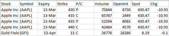 Most Active Equity Options & Strikes – AAPL, GFI by The Options Insider | Mar 1, 2013 | Unusual Activity