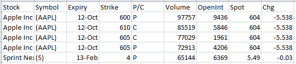 Most Active Equity Options & Strikes – AAPL, S by The Options Insider | Oct 26, 2012 | Unusual Activity